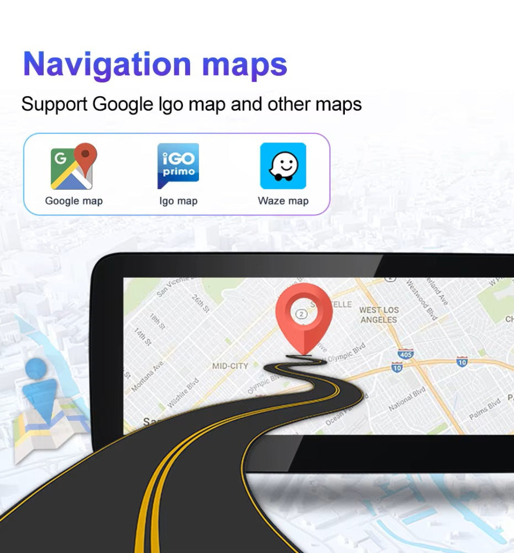• Navigation: Online & offline maps supported (Google Maps, Waze, iGO, etc.)
