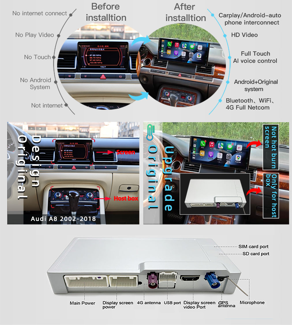 Carputech for Audi A8 S8 D3 D4 2002-2018 Android13.0 Radio Upgrade 12.3"Blu-Ray TouchScreen Stereo Carplay Auto WiFi SAT NAV