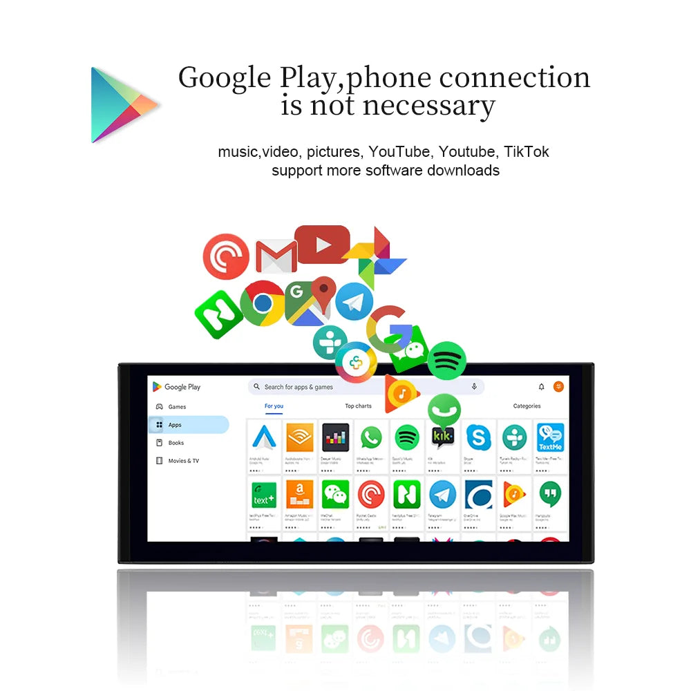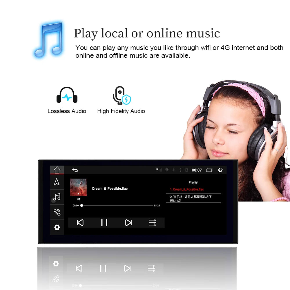 Android system in-car entertainment, used to control most secondary vehicle systems,assisted driving. Fit for BMW Audi Mercedes-Benz Porsche Land Rover/Jaguar Lexus Volvo volkswagenmore than 100 brands of cars. Allows the driver ( include front-seat passengers) to touch screen or knob to operate audio system (radio and CD player) , navigation system, and the communication system,the climate (air conditioner and heater), HD video (YouTube * TikTok *), online movies, Internet radio/TV, wireless CarPlay, has Android Auto, Bluetooth music, Bluetooth phone call, download various Android apps.