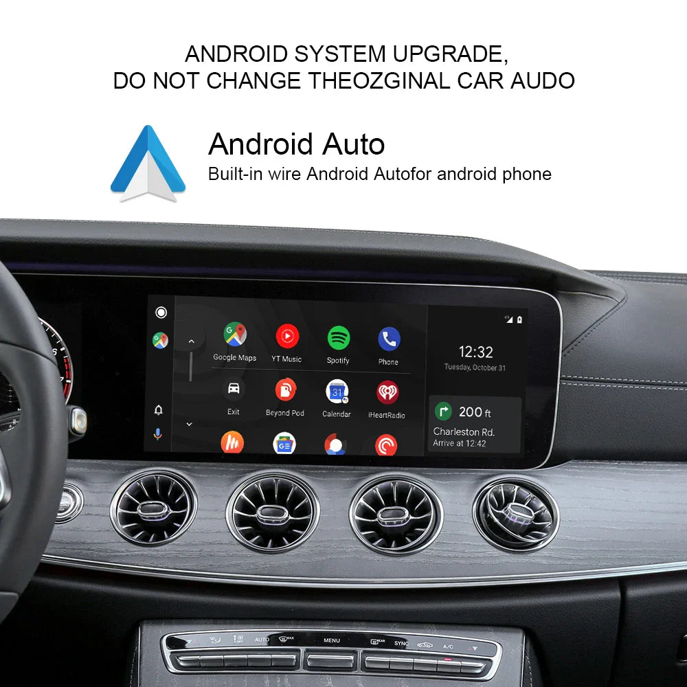 Carputech Android CarPlay AI box for Mercedes Benz E Class W213 ntg5.5 original screen 12.3inch 2016-2019 navigation headunit infotainment navigation system, it shows you a whole new world of infotainment. Intelligently controlled by voice, touch or gestures. Seamlessly integrated into your digital life and customisable with individual display styles. And the fascination of 4041 just keeping grow with every journey, as the system adapts intelligently to the individual driver. comand allows the driver (include front-seat passengers)to touchscreen or Comand knob to operate audio system (radio and CD player) , navigation system(GPS/Navi) , and the communication system,the climate (air conditioner and heater), HD video (YouTube * TikTok *), online movies, Internet radio/TV, wireless CarPlay, has Android Auto, Bluetooth music, Bluetooth phonecall, download various Android apps.