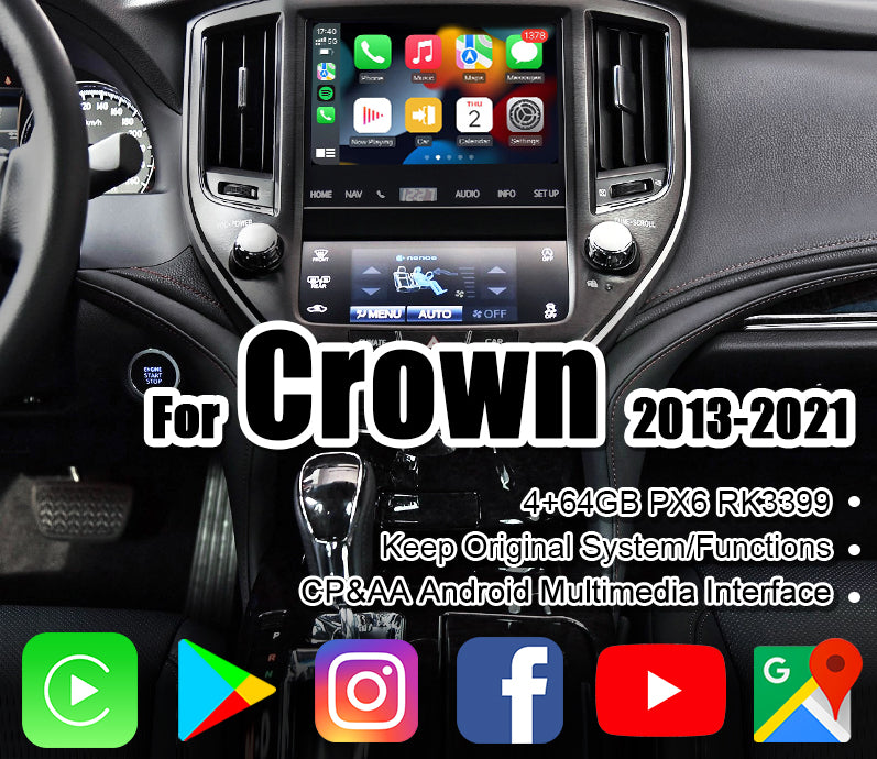 Carputech Wireless Apple Carplay / Android Video interface Module for Toyota Crown 2013-2021 AWS210 215 204 with YT, NF,Google play LX570 GX460