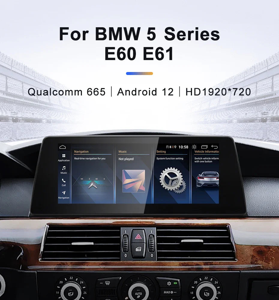 For BMW 3/5series E60 E61 E90 E91 Snapdragon665 10.25inch Wireless CarPlay AUTO Stereo Multimedia Head Unit Radio Bluetooth GPS