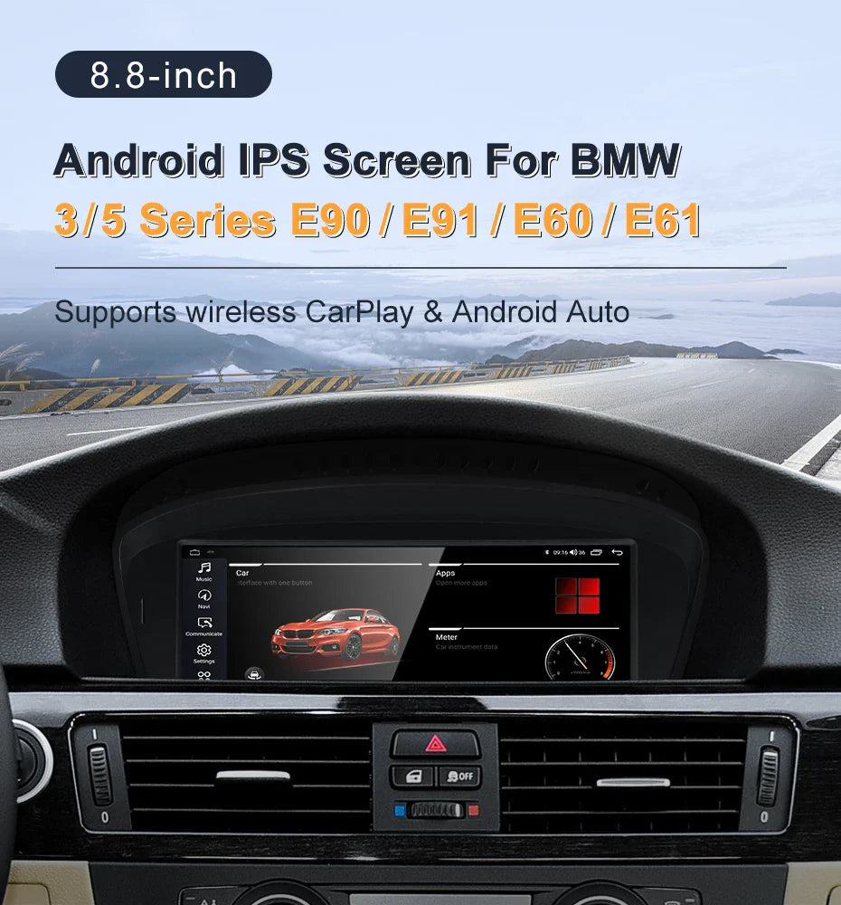 For BMW 3series E90 E91 5series E60 E61 MTK 8581 8.8inch Touch Screen Wireless CarPlay AUTO Android13 System CCC Head Unit Radio Bluetooth