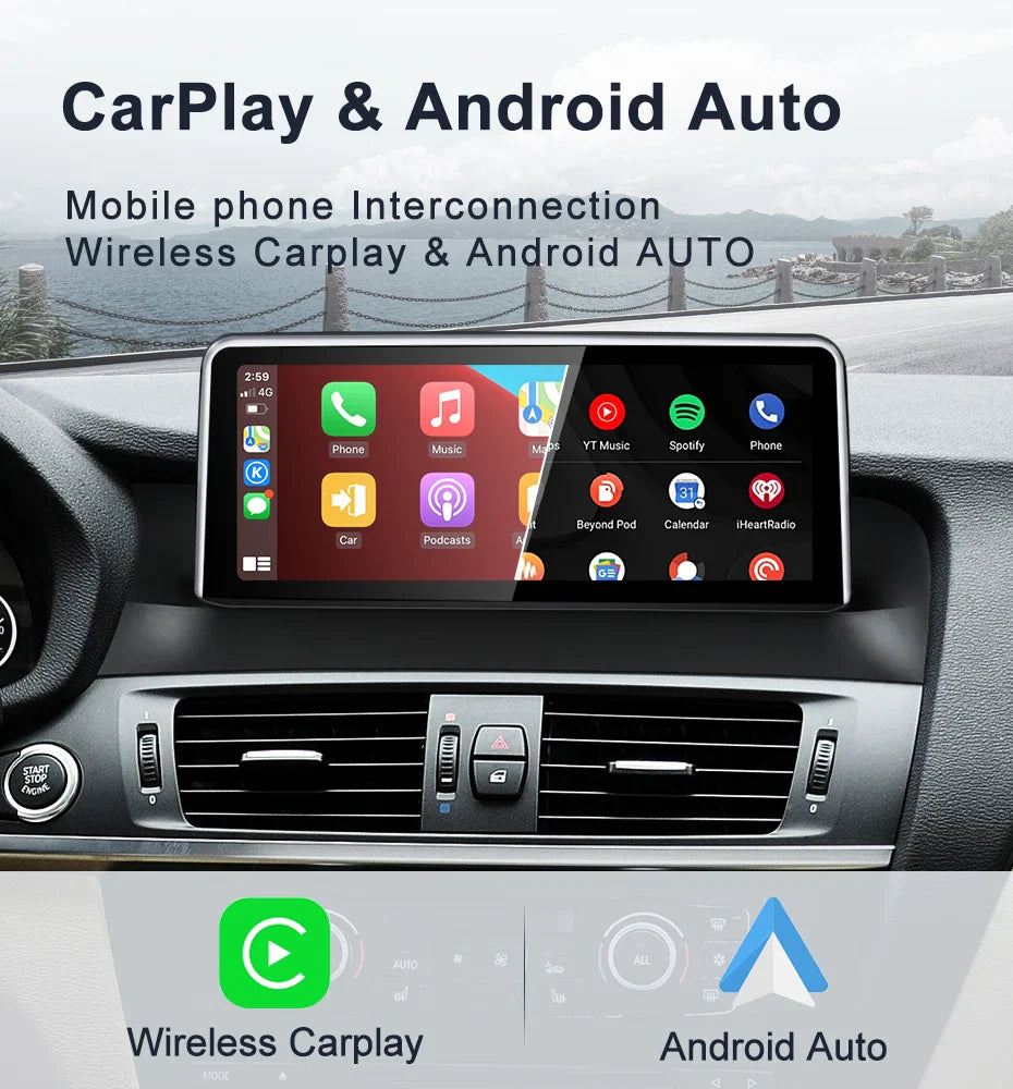 For BMW F25 F26 MTK8581 10.25inch Wireless CarPlay AUTO Android Car Multimedia System Head Unit Radio Bluetooth GPS Navigation