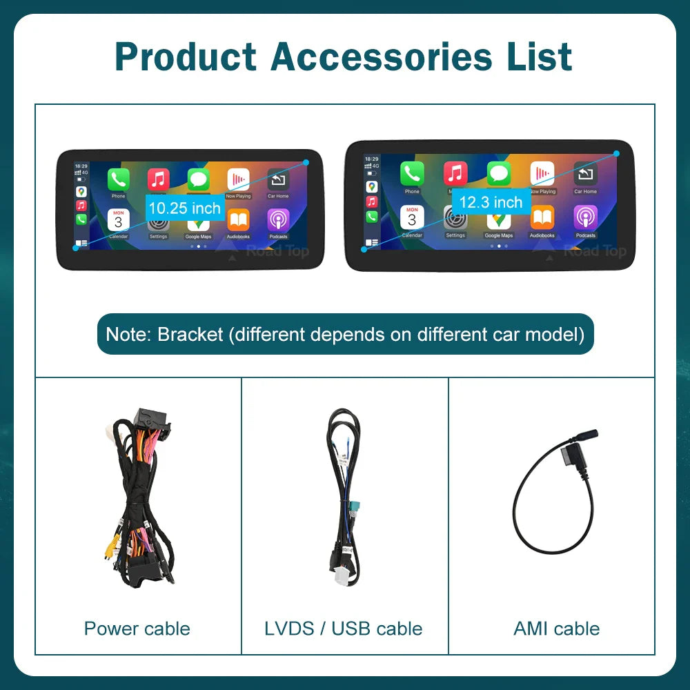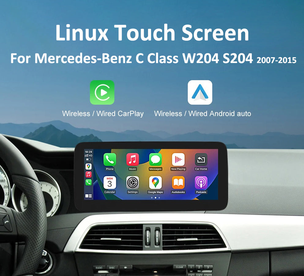 For Mercedes-Benz C Class W204 S204 2007-2015 12.3inch 1920*720 Linux Wireless Apple CarPlay Android Auto Multimedia Display Touch Screen