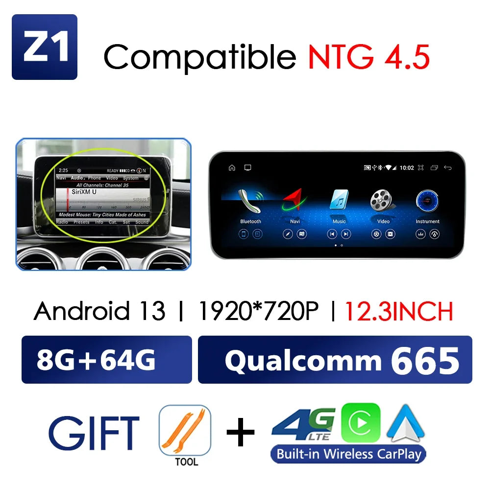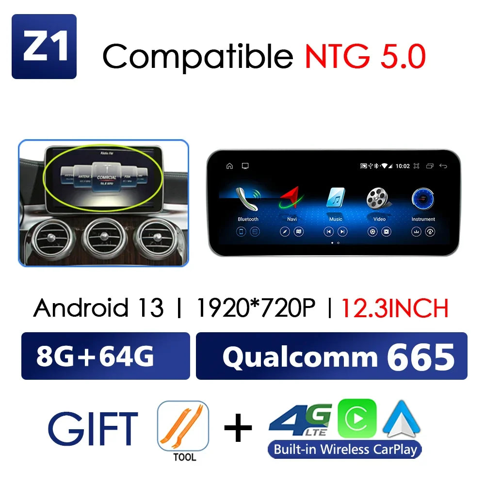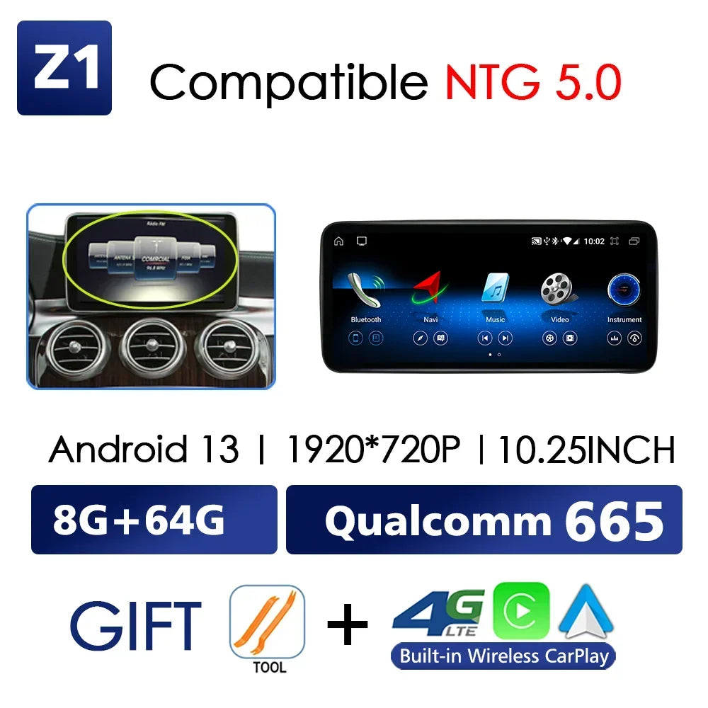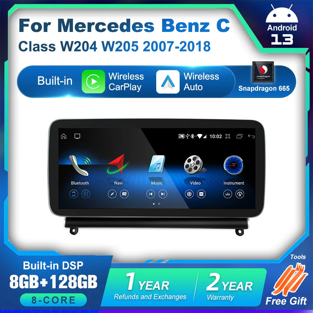 For Mercedes Benz C Class W204 W205 2007-2018 Android 13 Wireless CarPlay Qualcomm 665 Multimedia Intelligent Player GPS DSP