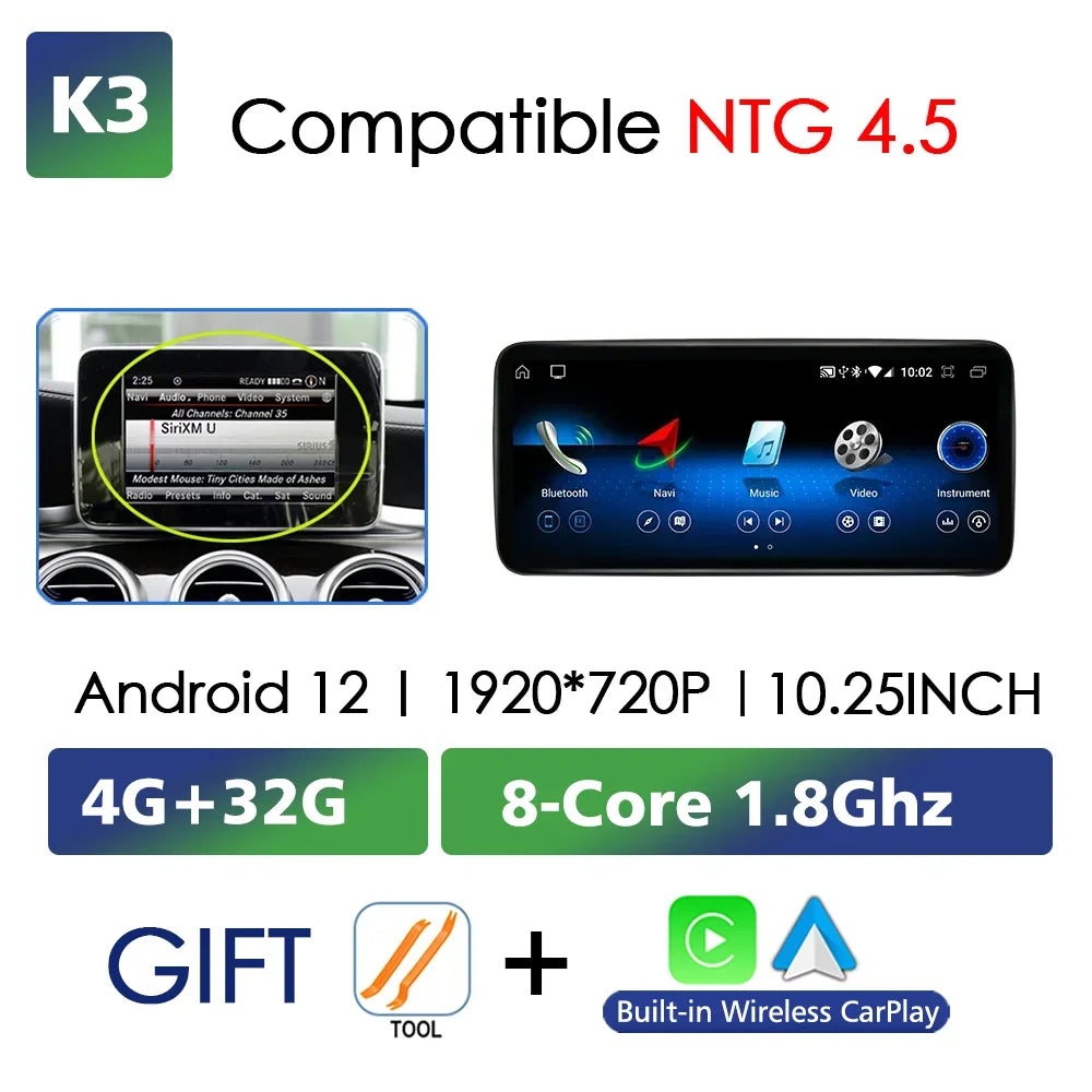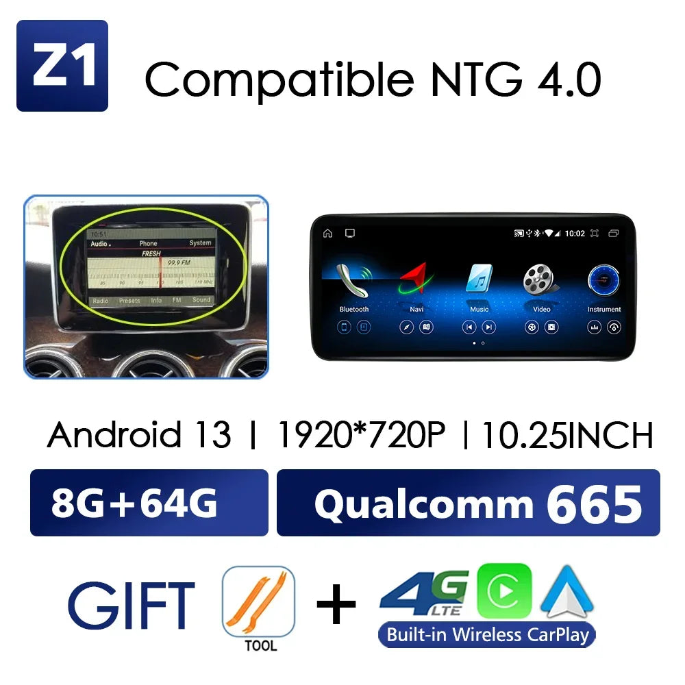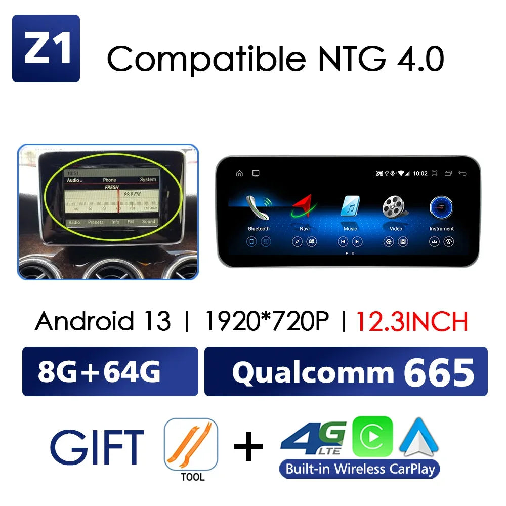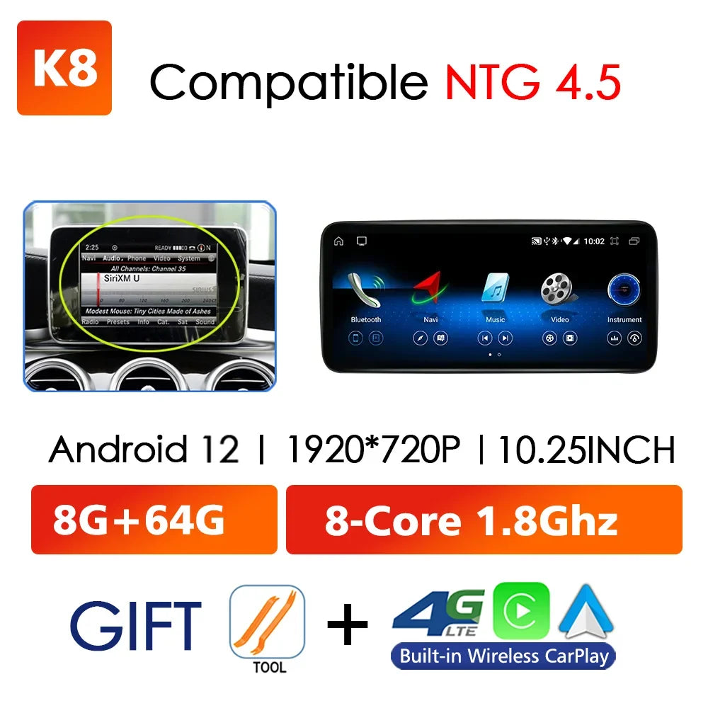 For Mercedes Benz C Class W204 W205 2007-2018 Android 13 Wireless CarPlay Qualcomm 665 Multimedia Intelligent Player GPS DSP