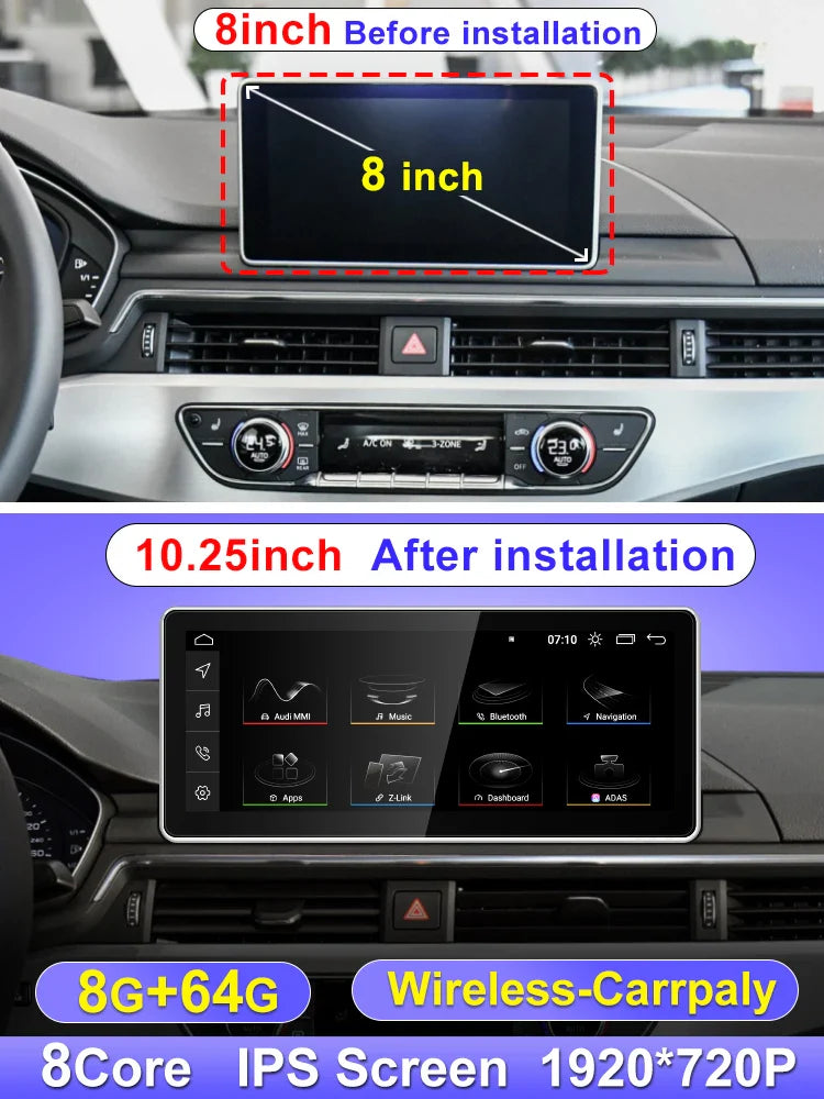 Qualcomm 8G 128G Android12 10.25inch Carplay AUTO For AUDI 2018-2022 A4 A5 S5 B9 Car Video Players GPS Navigation Smart Screen