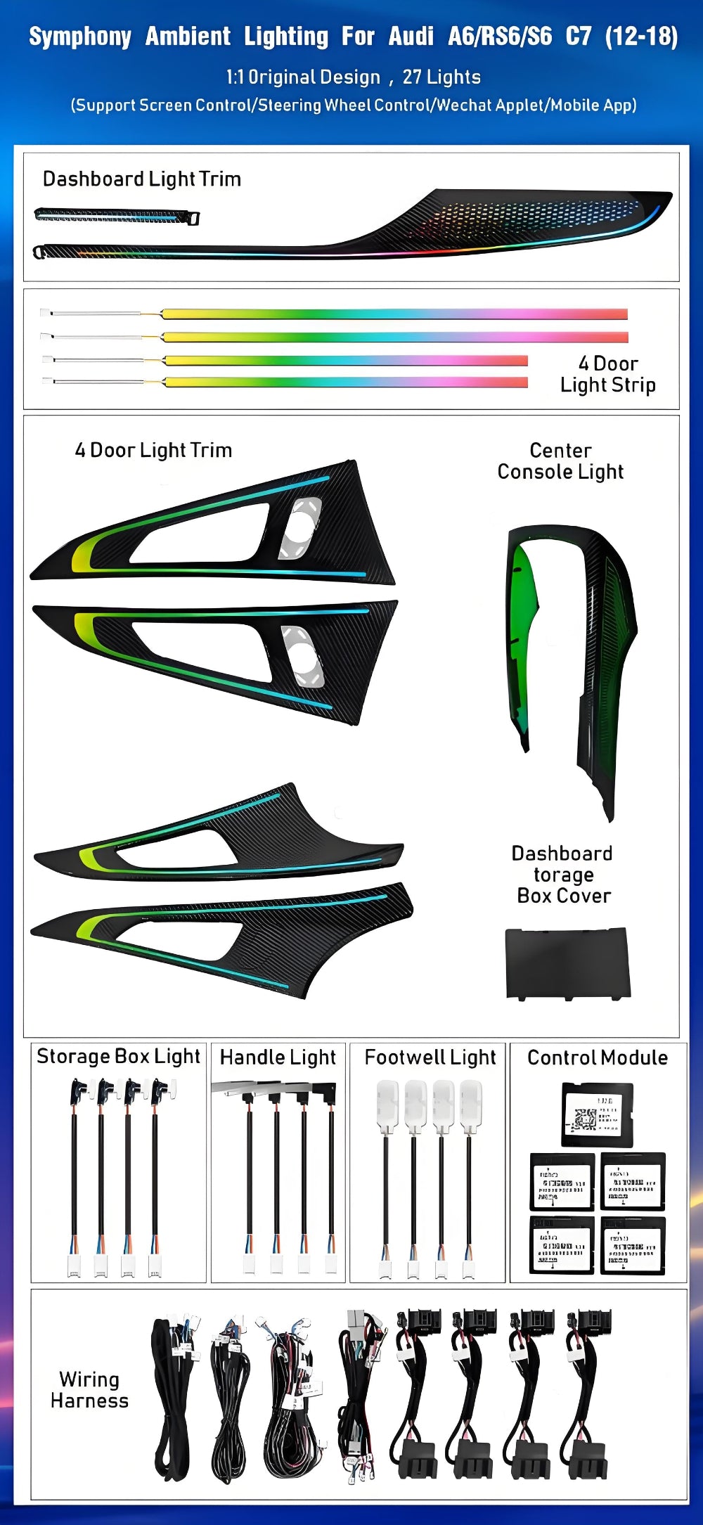 6. The ambient light kit with Original vehicle agreement, Support Car Screen Control