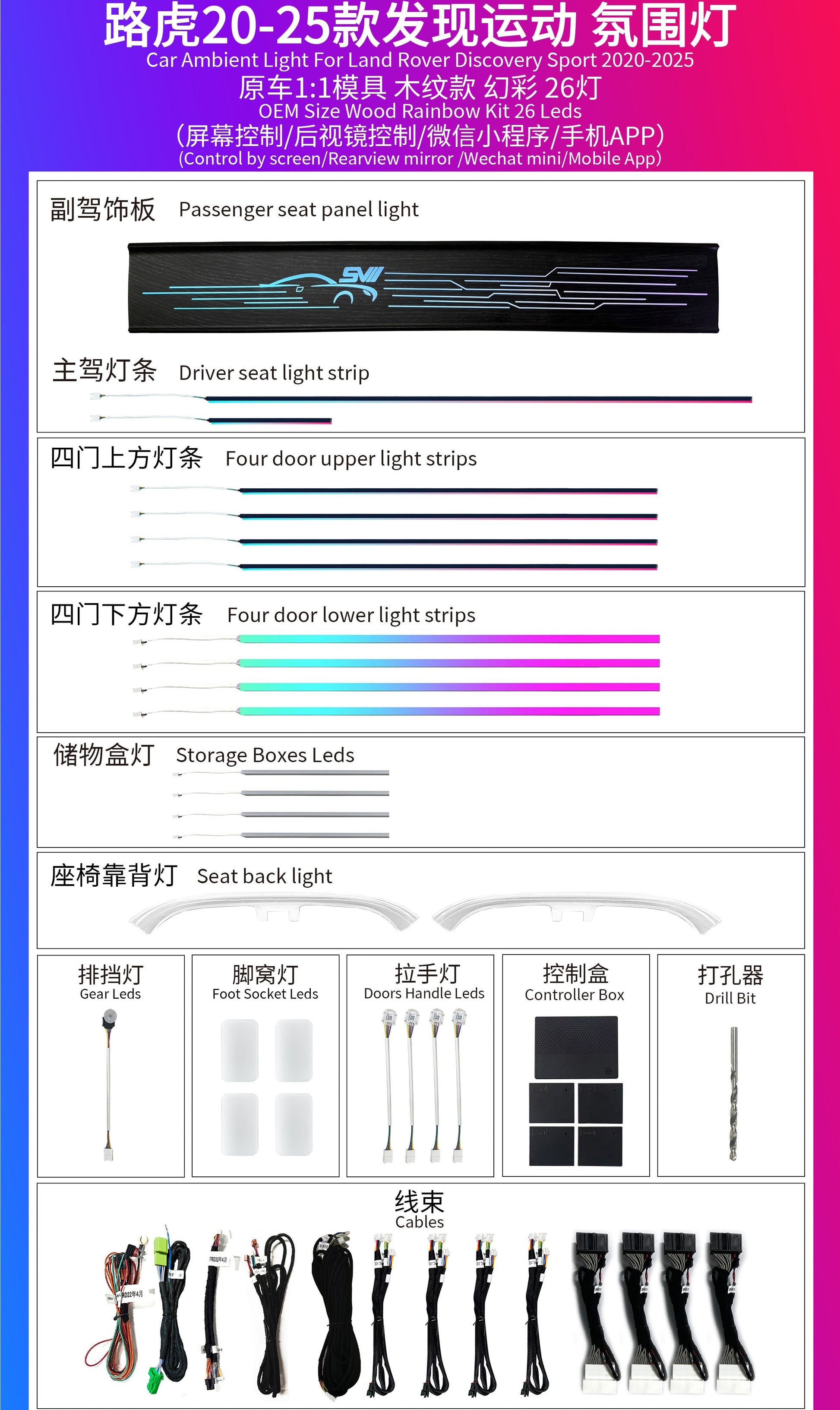 Upgrade Symphony LED Car Interior Ambient Lighting for Land Rover Discovery Sport 2020-2025 Decoration Accessories