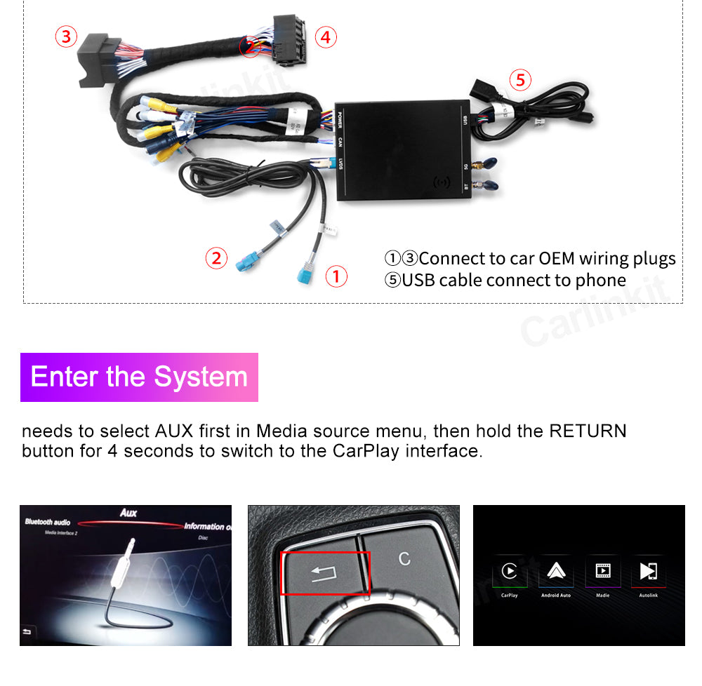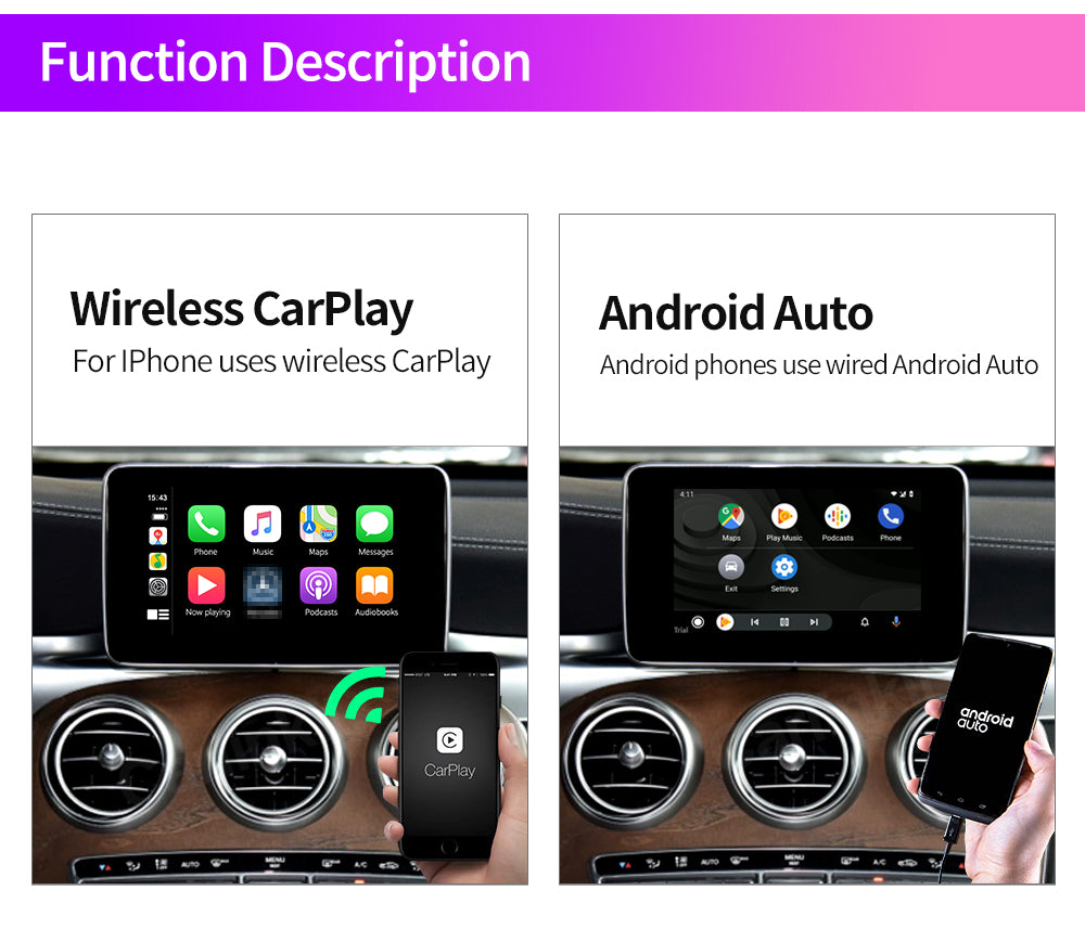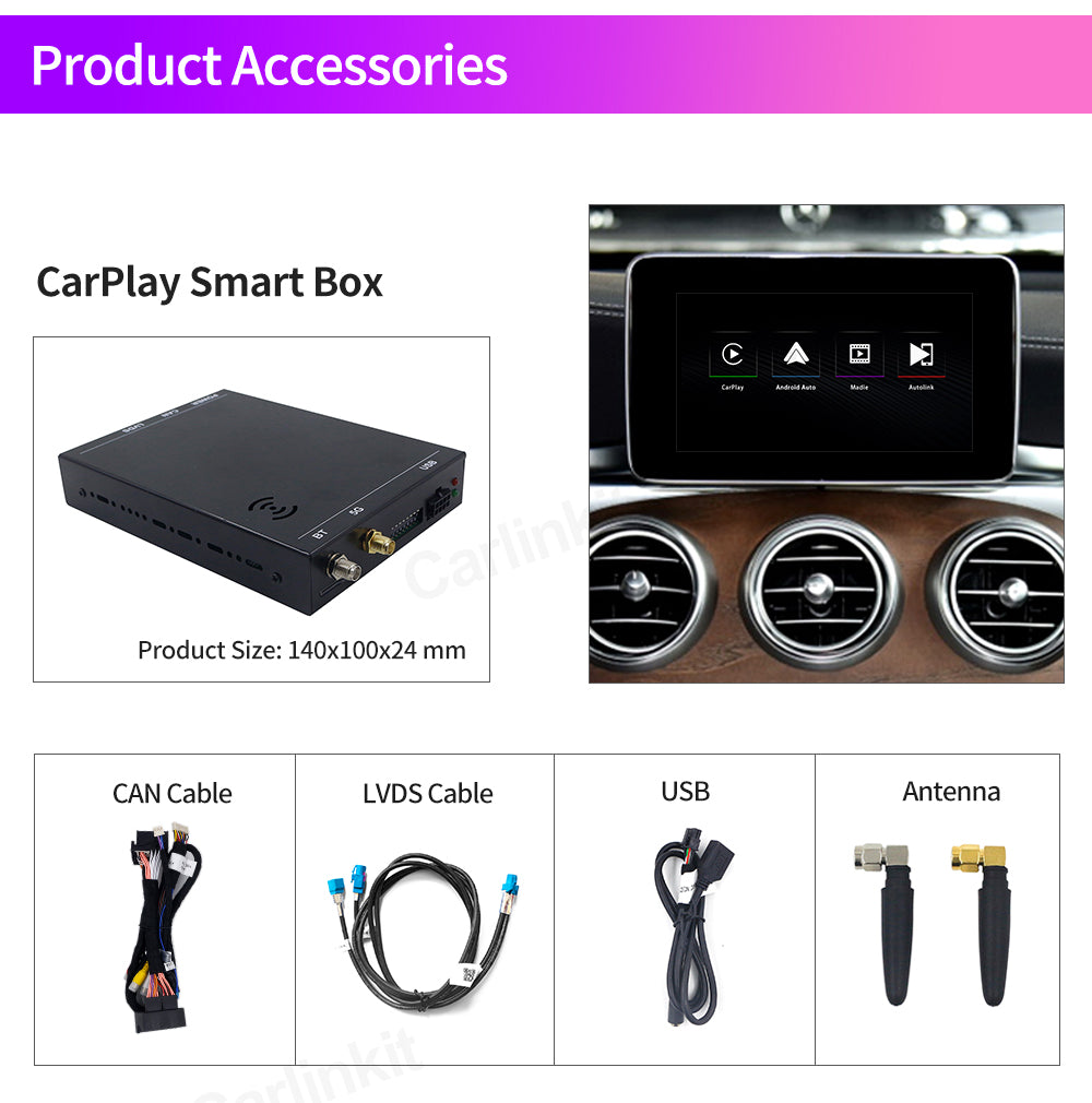 Wireless Carplay Auto Smart Box for Mercedes Benz NTG 5.0 2015-2018 CarPlay Android Auto Mirrorlink Support Reverse Camera